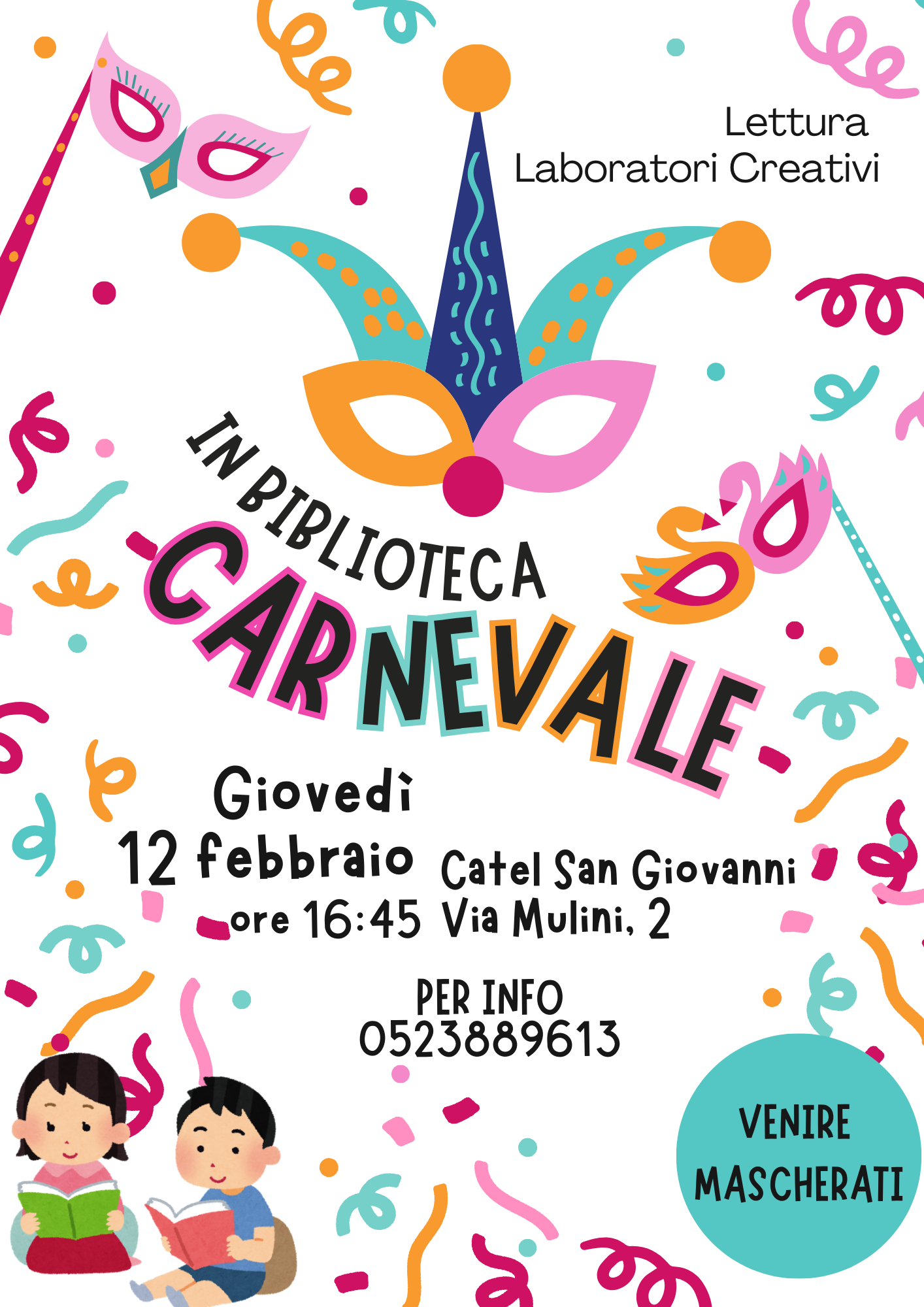 Giovedì 12 febbraio ore 16.45 lettura e laboratorio creativo a tema Carnevale. Ingresso libero e gratuito.